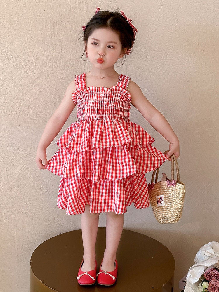 레드체크캉캉원피스