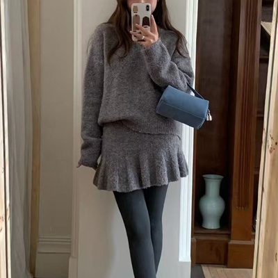 on.[SET351]부클루즈핏니트미니스커트투피스