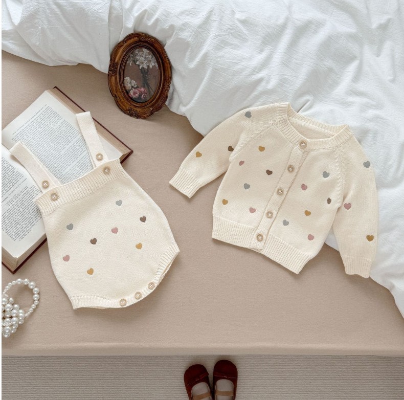 [수입]하트자수가디건셋