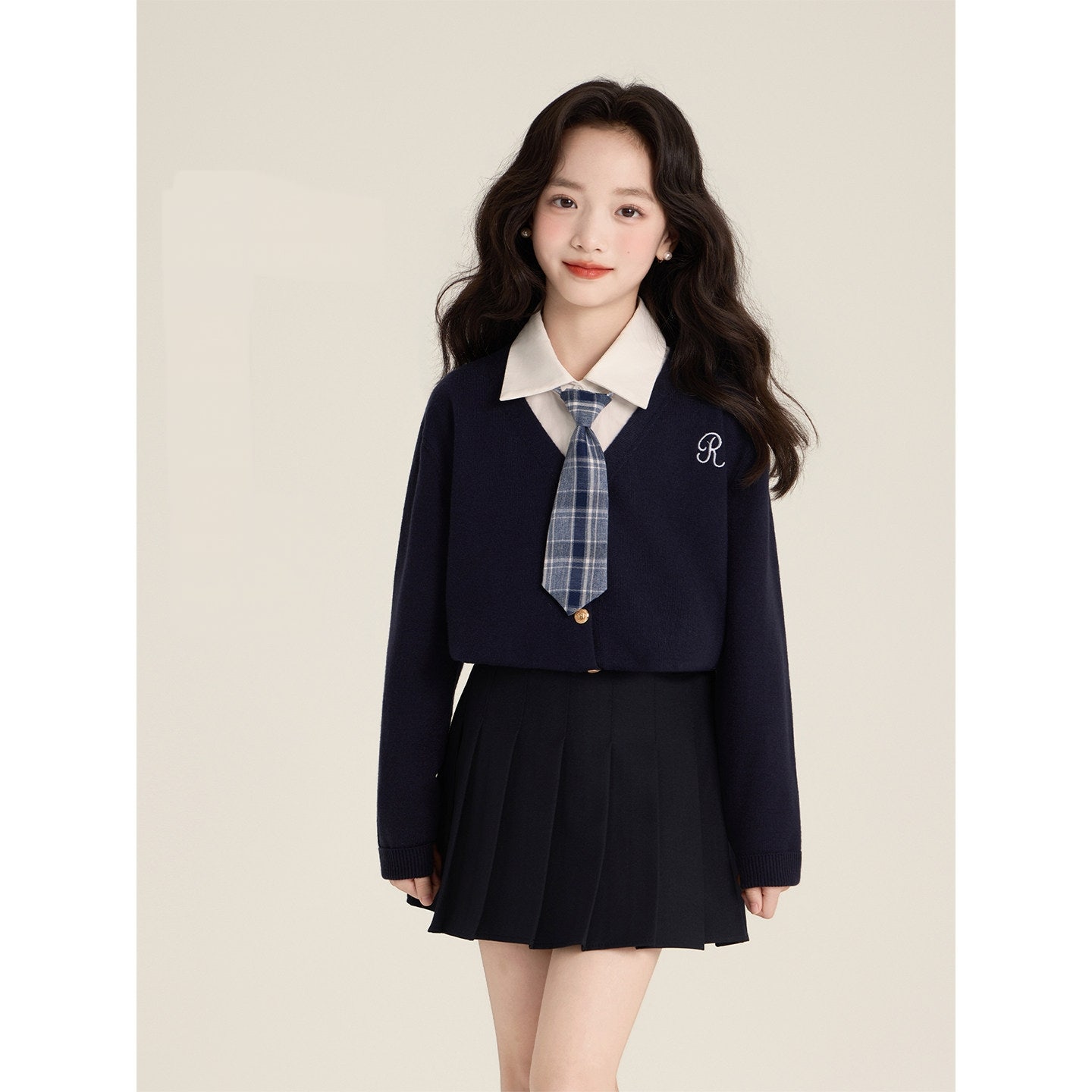 3pcs 가디건+셔츠(타이포함)+스커트