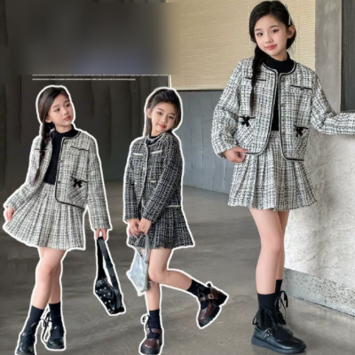 [빠른수입] 주니어) 트위드 리본치마상하셋