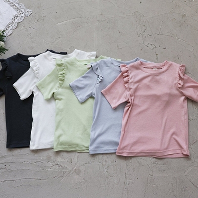 슬림한 핏이 돋보이는 신축성 좋은 골지 반팔 티셔츠입니다